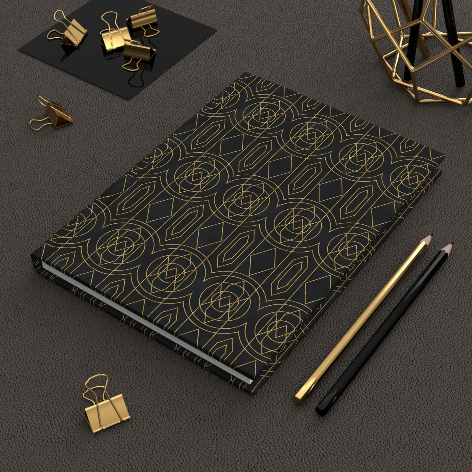 Our beautiful Art Deco Gold and Black Hard Cover Matte Journal will make your everyday journaling more personal, private, and stylish.