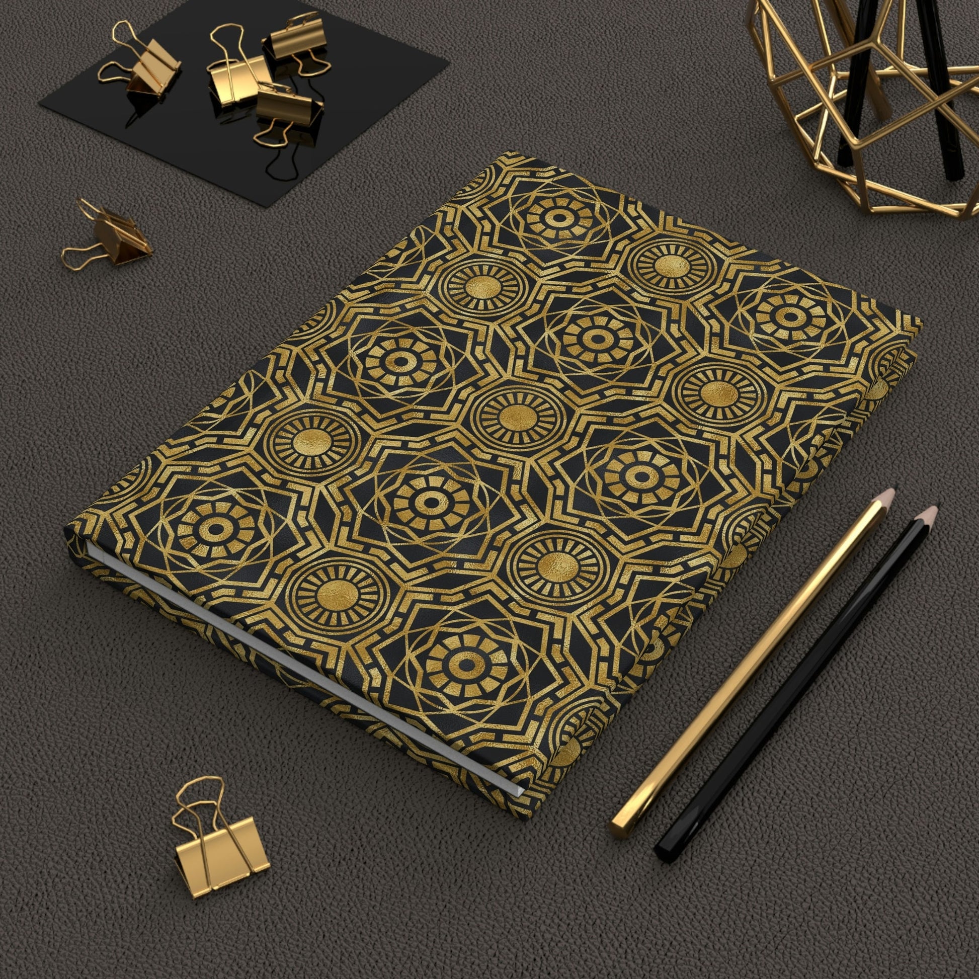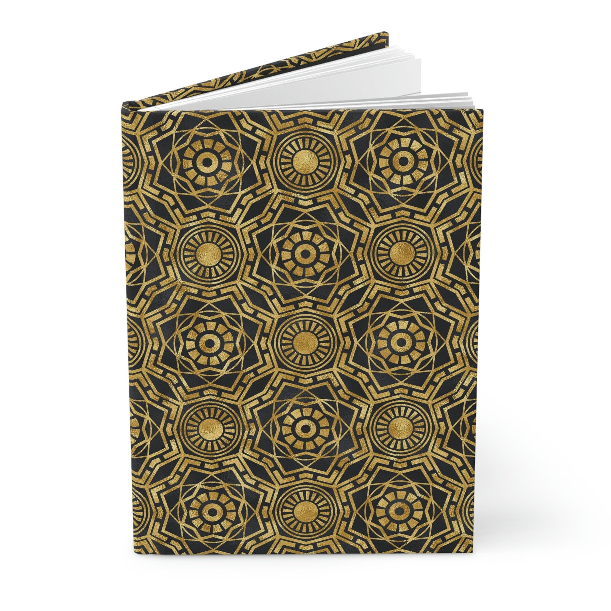 Our beautiful Art Deco Gold and Black Hard Cover Matte Journal will make your everyday journaling more personal, private, and stylish.