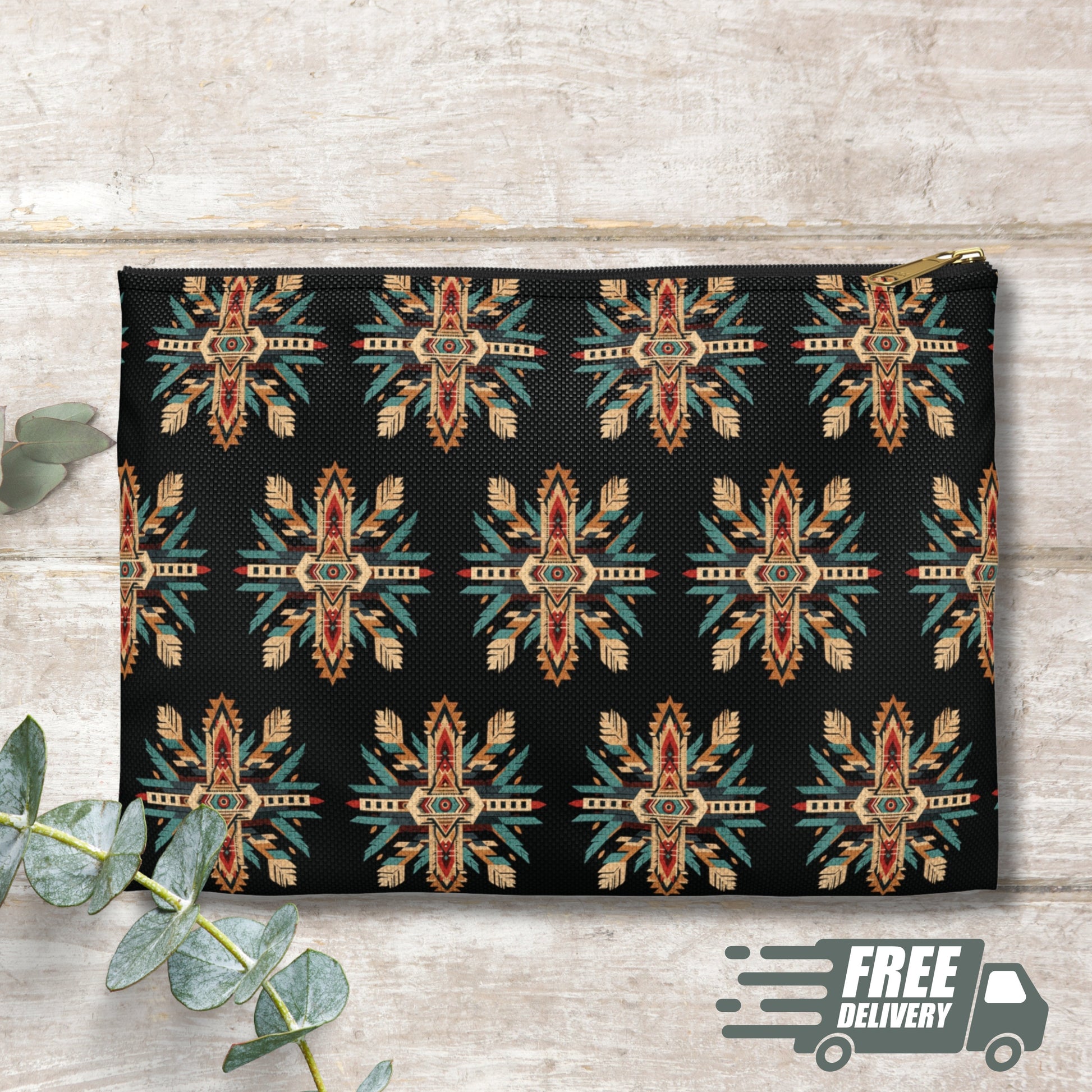 Boho Aztec Pattern Pouch Aztec Makeup Case Western Zipper Pouch Bag Accessory Pouch Diabetic Supply Bag Aztec Cosmetic Bag Western Print Bag