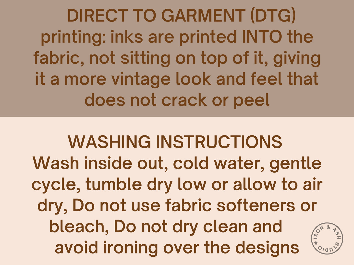 The ink is printed INTO the fabric, not sitting on top of it, giving a more vintage look and feel.