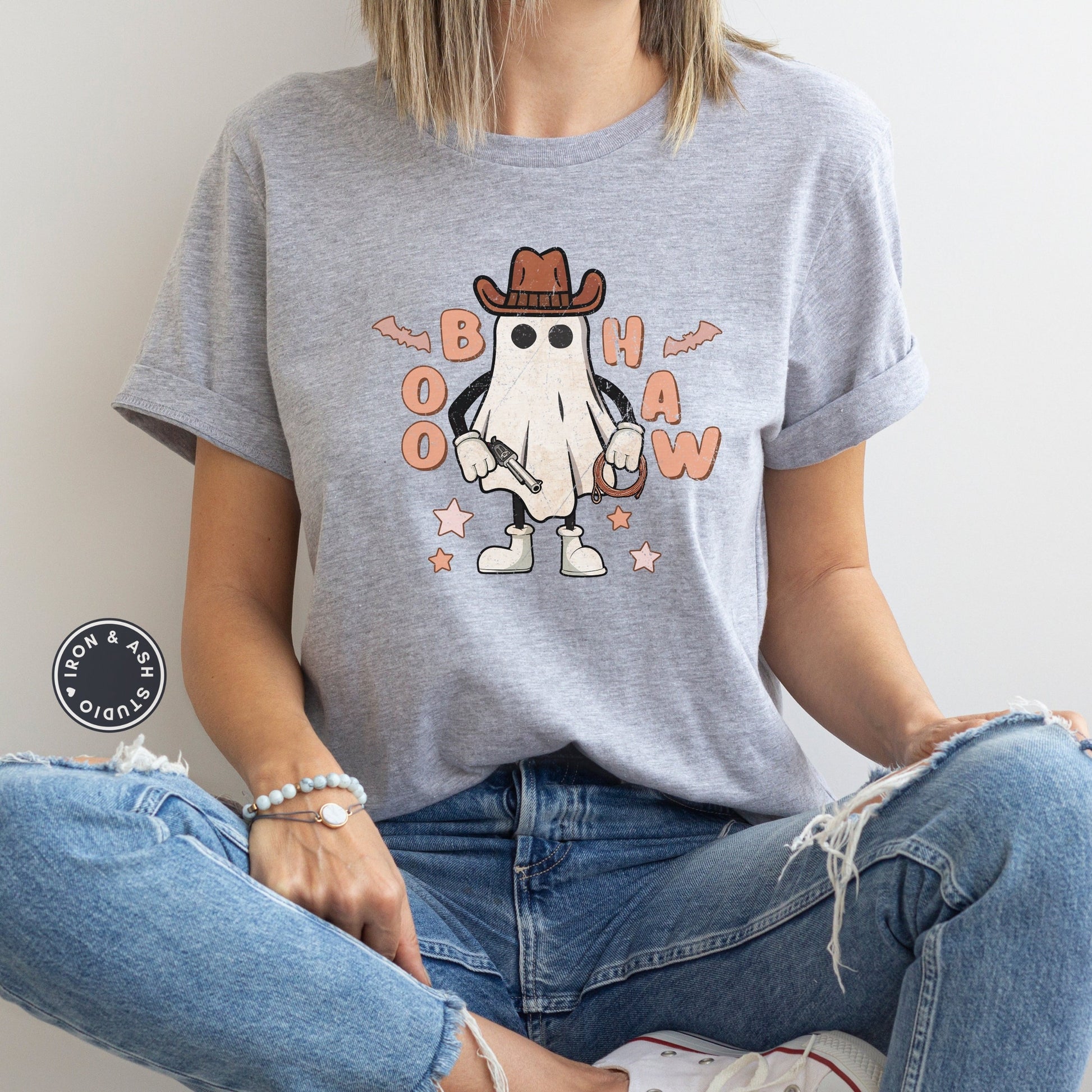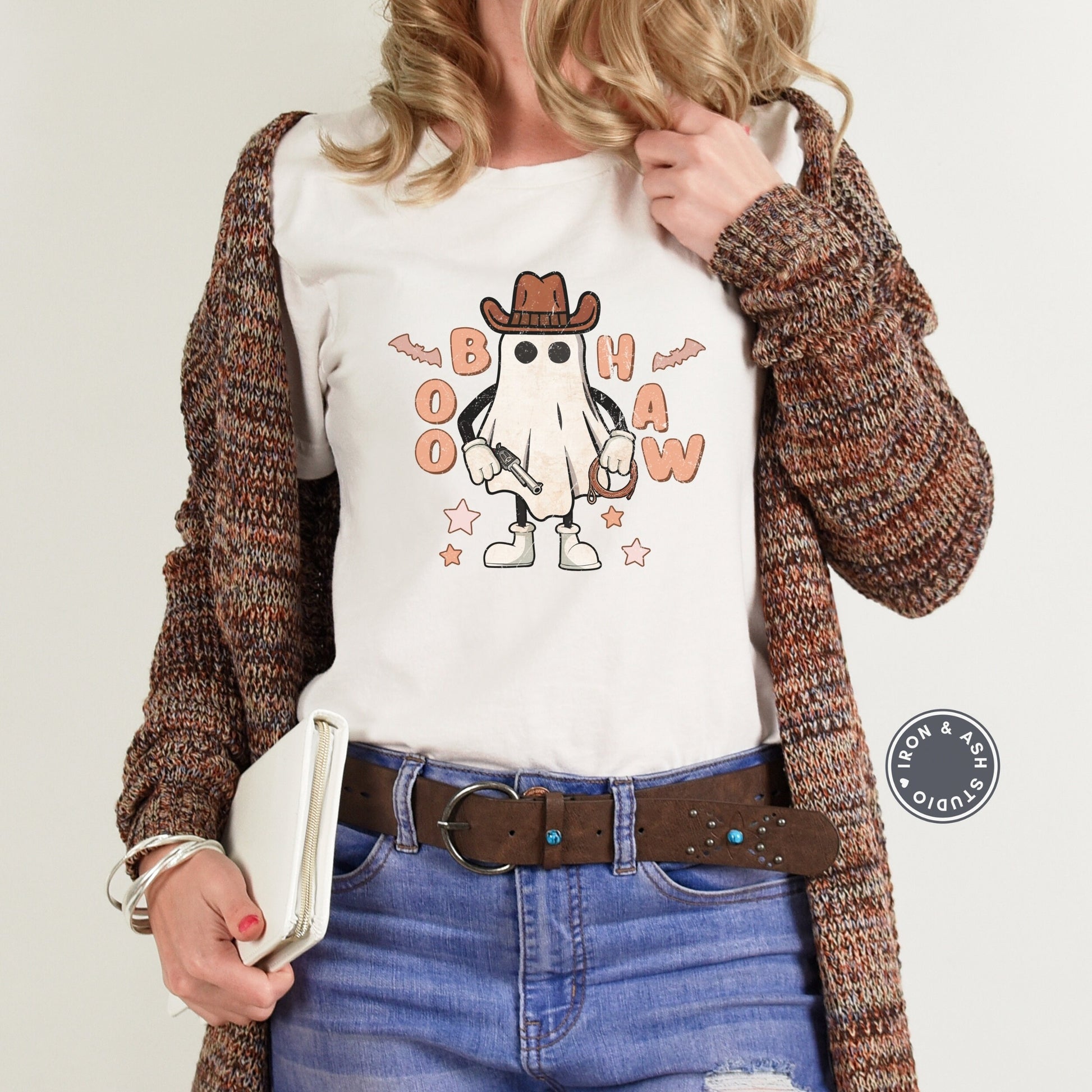 Boo Haw Halloween Ghost Shirt, Yee Haw Halloween, Cute Women's Western Halloween Tee, Retro Halloween, Cute Country Cowgirl Halloween Tee