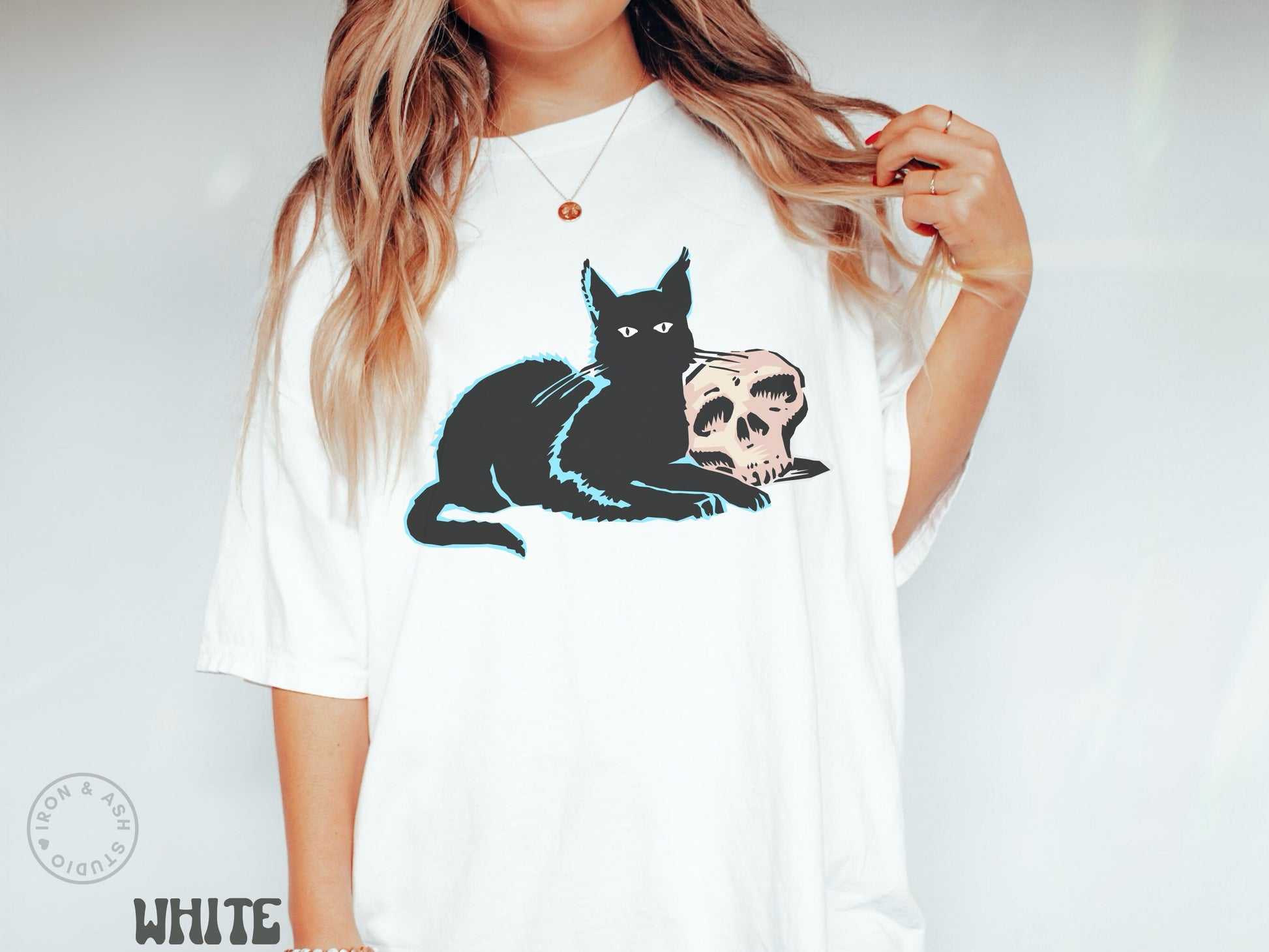 Skull Cat Shirt, Skeleton and Cat TShirt, Comfort Color, Vintage Art Apparel, Trendy Aesthetic, Witchy Clothing for Women, Skeleton Tee