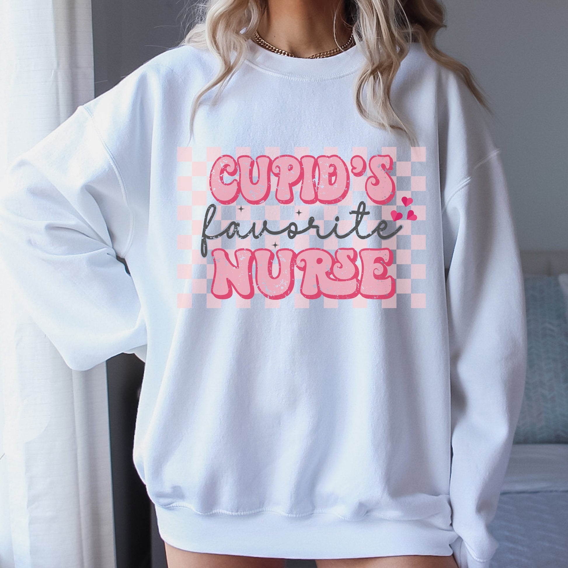 Cupids Favorite Nurse Sweatshirt Retro Nurse Valentines Day Crewneck Sweater ER Nurse Cute VDay Womens Funny RN Valentines Day Sweatershirt