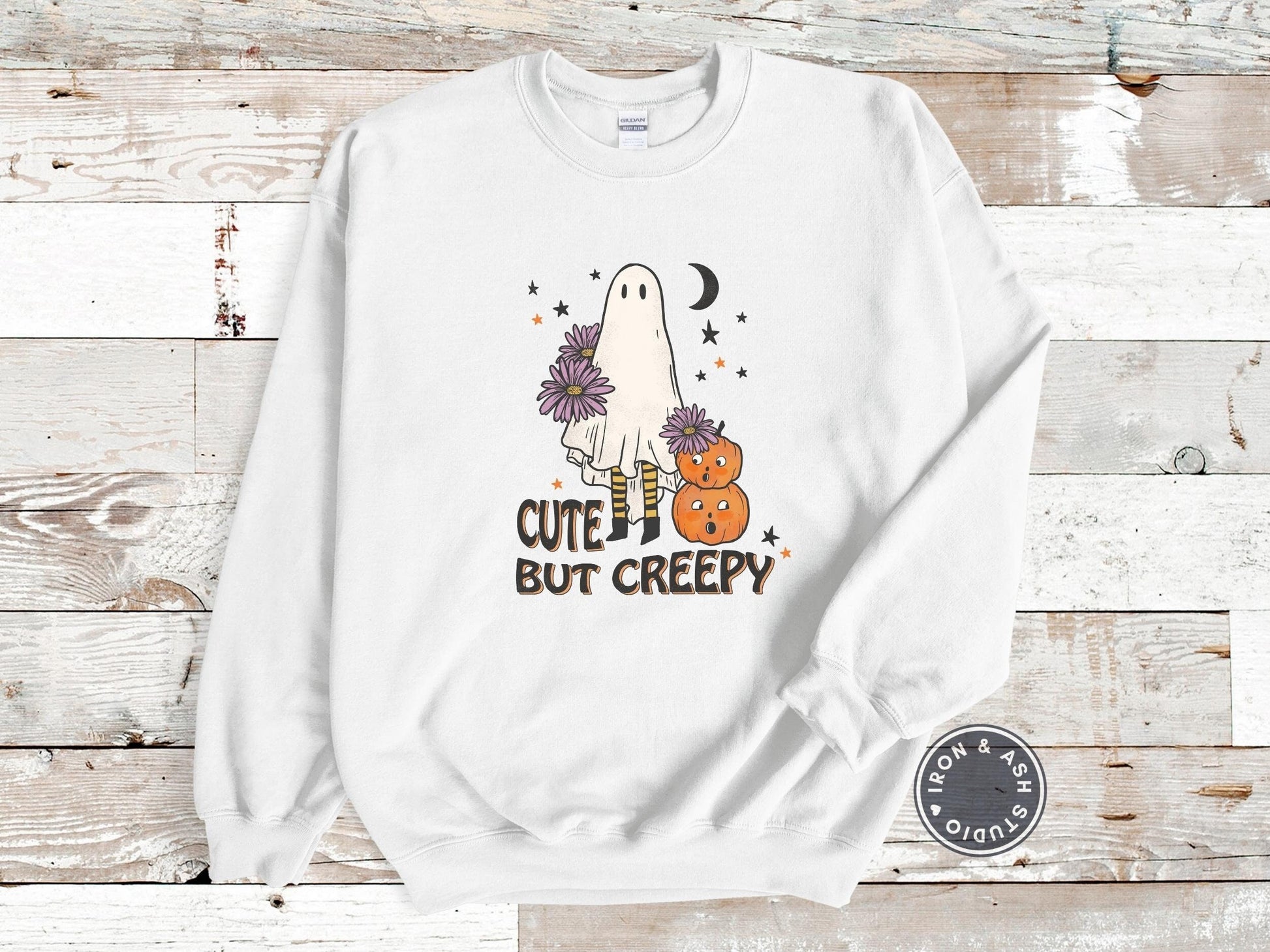 Cute But Creepy Sweatshirt, Spooky Season Ghost Halloween Crewneck, Cute Ghost, Ghost Sweatshirt, Floral Retro, Halloween Party Shirt