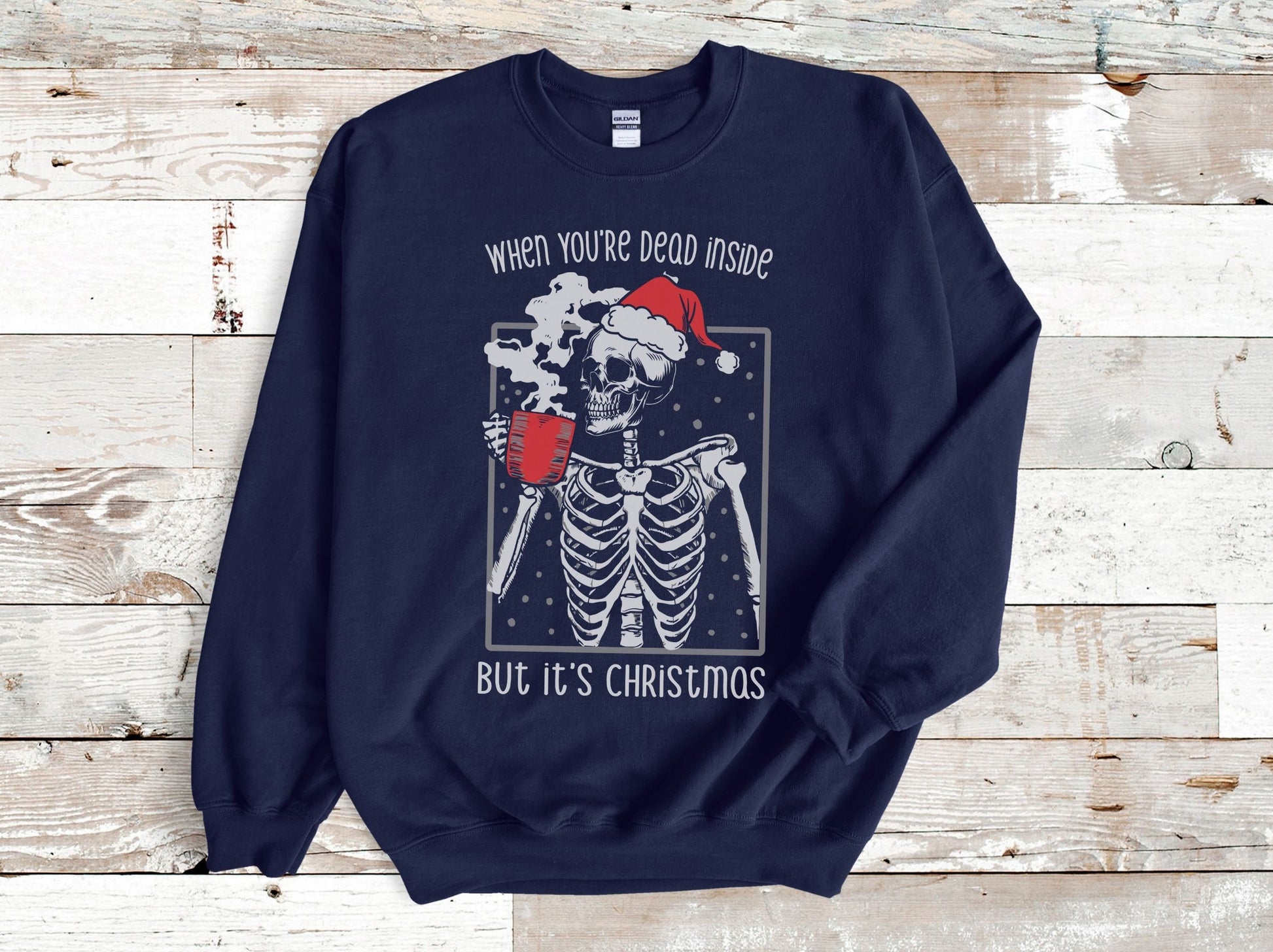 Dead Inside But It's Christmas Skeleton Sweatshirt, Skeleton Sweatshirt, Funny Christmas Sweater, Christmas Coffee Shirt,Skeleton Coffee