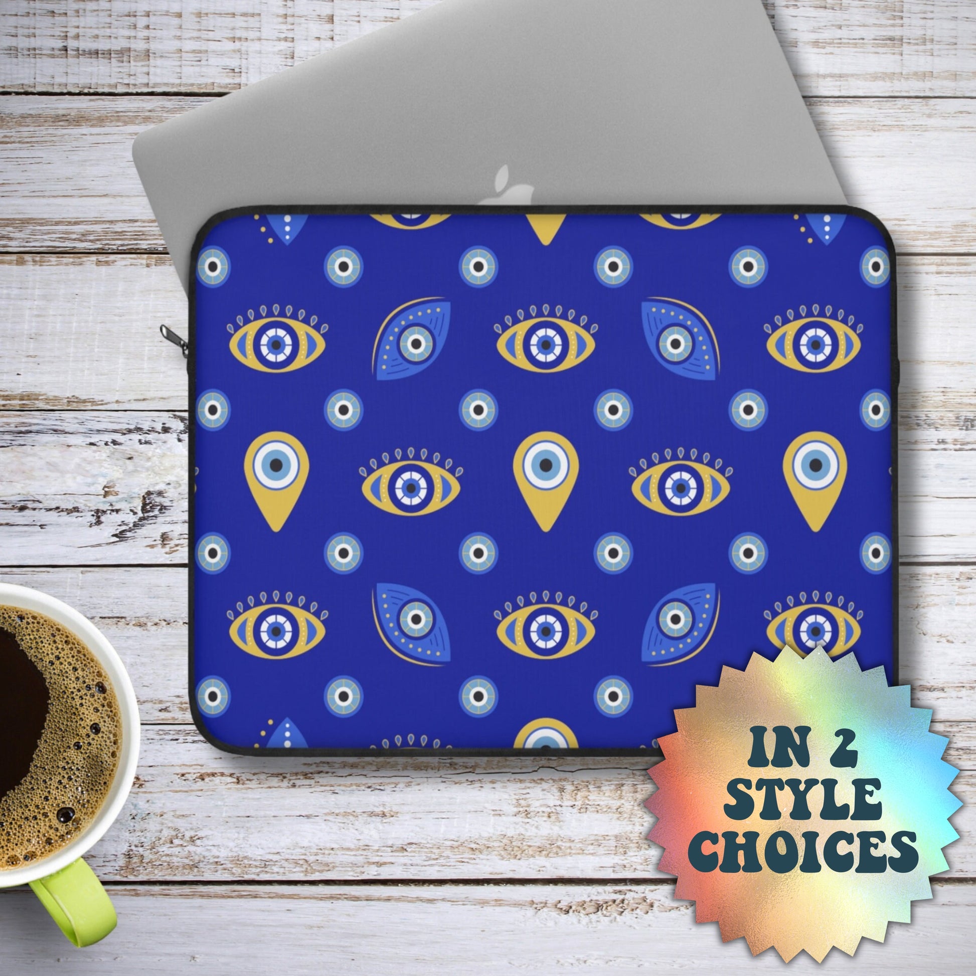 Evil Eye Laptop Sleeve, Greek Evil Eye Gift, Mystical Zippered Laptop Case, Blue Evil Eye Pouch, Macbook Sleeve 12 13 15 Dell Soft Sleeve