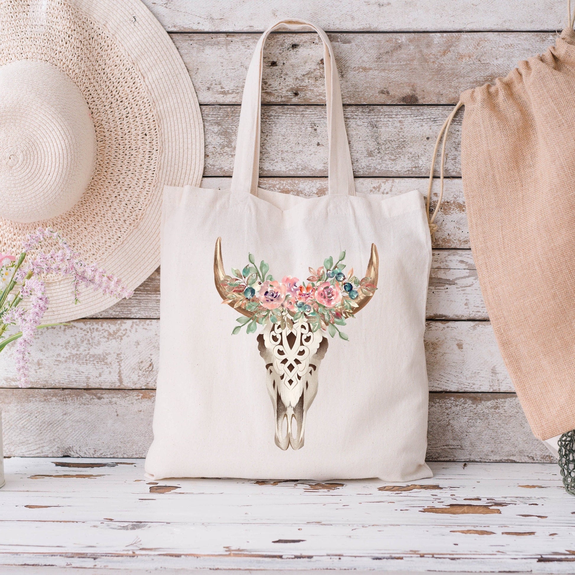 Our Boho Floral Cow Skull Cotton Shoulder Tote Bag is perfect for everyday errands while keeping things stylish.