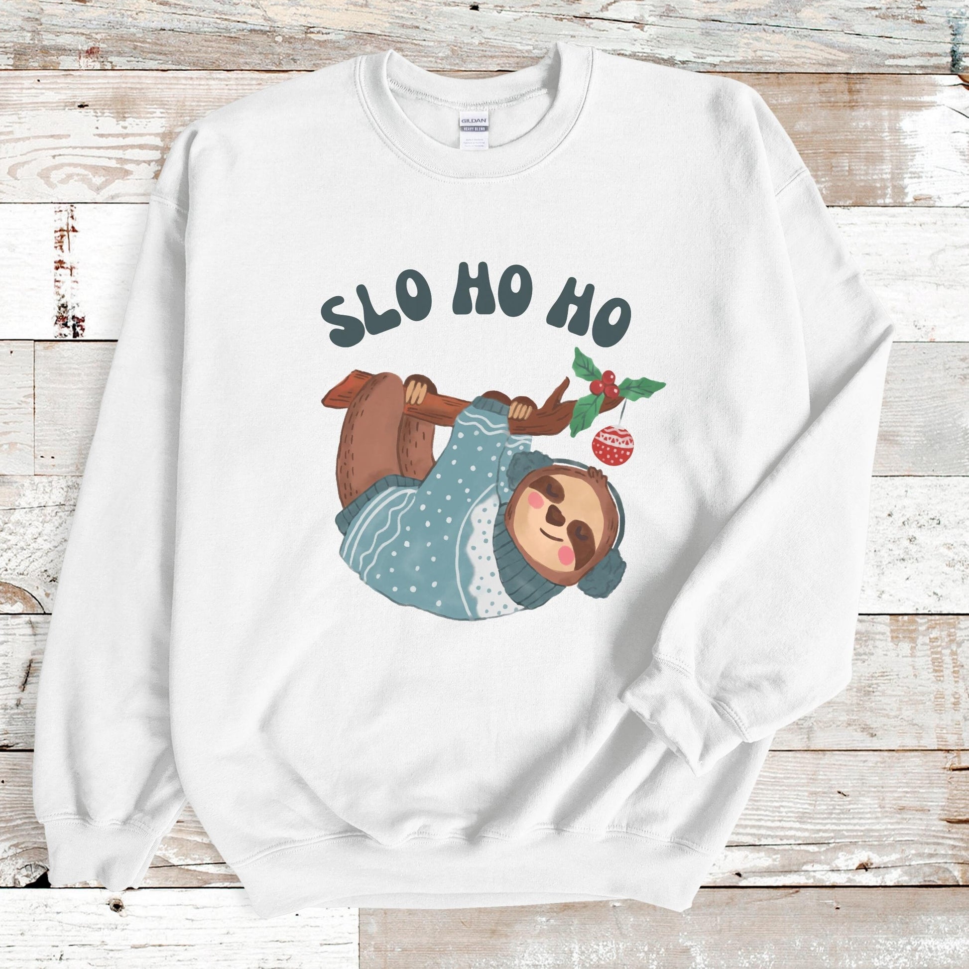 Our hilarious "Slo Ho Ho" Sloth Christmas Crewneck Sweatshirt is the perfect Fall holiday gift for Sloth lovers! This cute animal Christmas sweater will be their favorite with the best-selling Gildan brand sweatshirts.