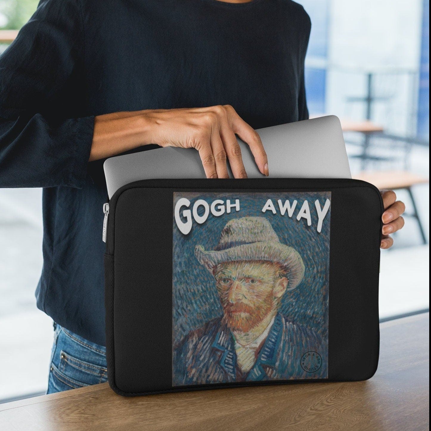 Our funny Van Gogh "Gogh Away" Laptop Sleeve is perfect for Artists, Art Teachers, Students, and more!