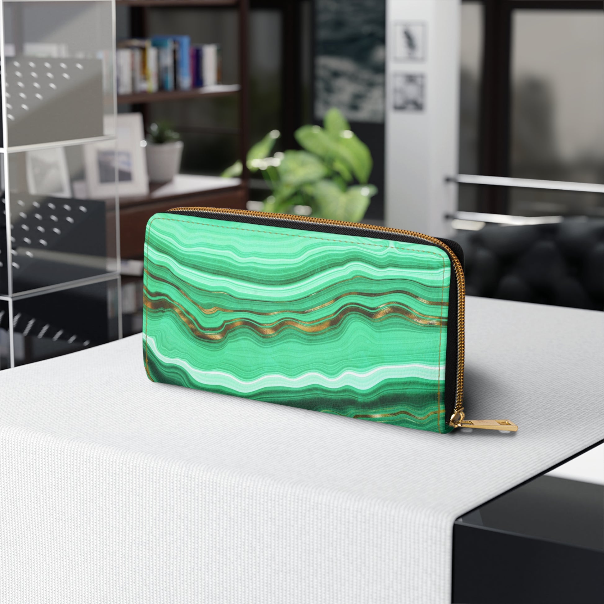 Geode Wallet, Green Crystal, Zippered Wallet Pattern, Zip Around Wallets for Women, Vegan Faux Leather Wallet, Boho Wallet,