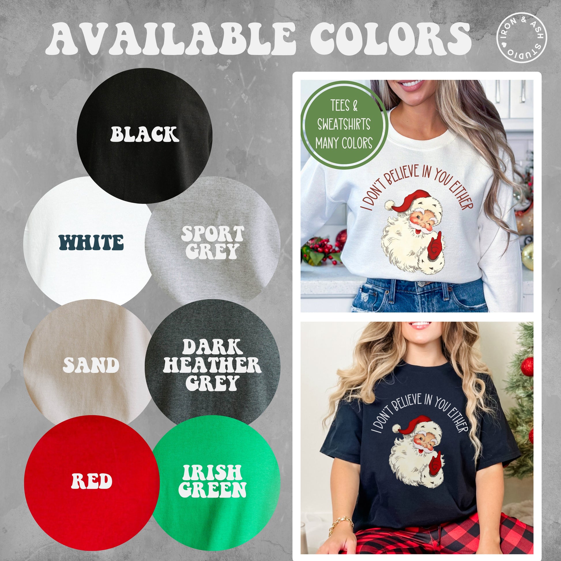 Funny Santa Sweatshirt Funny Xmas Shirt I Don't Believe In You Either Funny Xmas Sweater Ugly Christmas Shirt Santa Tshirt Xmas Party Shirts