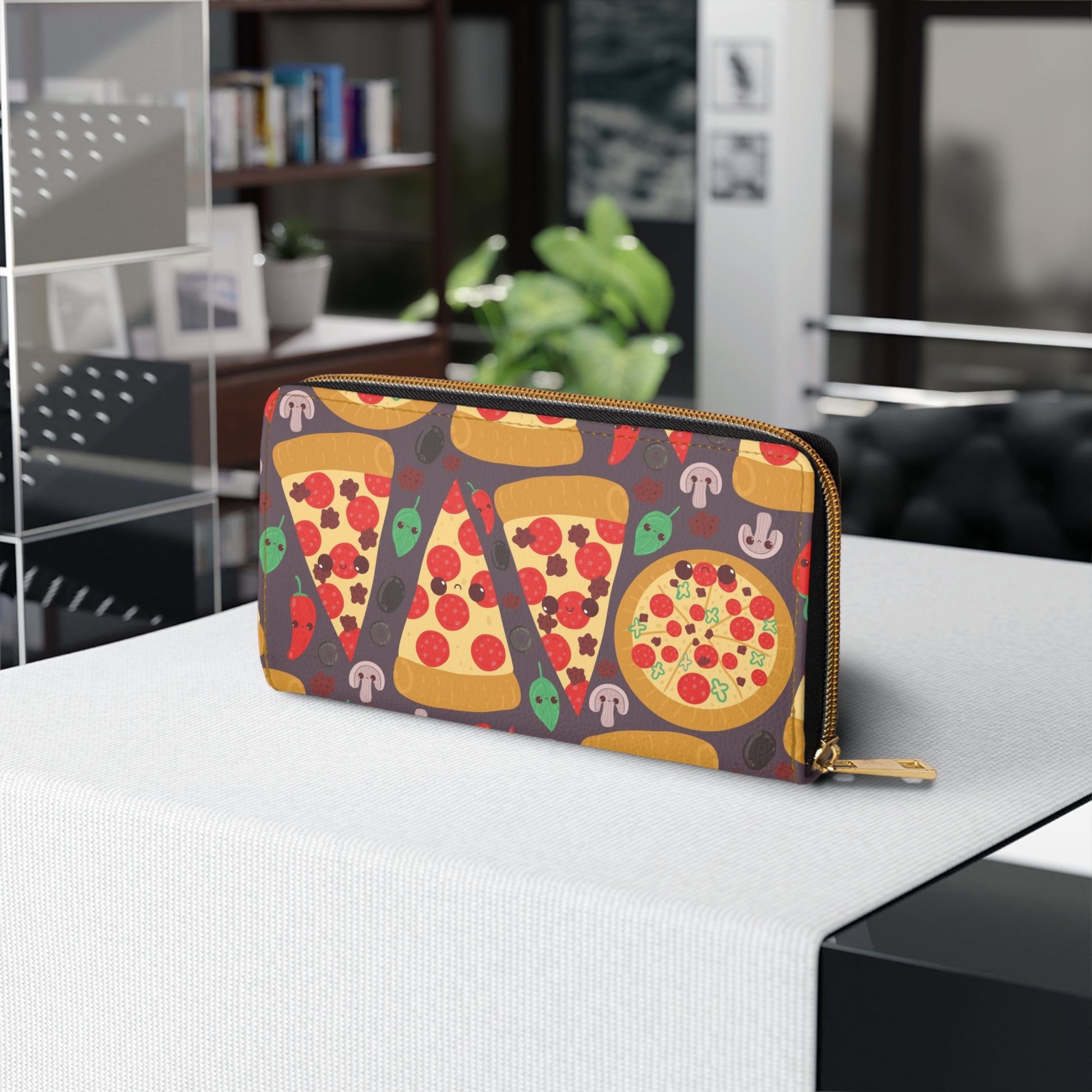 Kawaii Wallet Pizza Zippered Wallet for Women Zip Around Wallet Kawaii Print Clutch Credit Card Wallet Vegan Wallet Faux Pizza Lover Gift