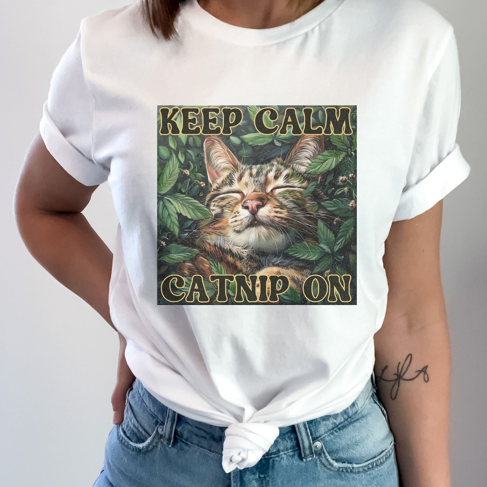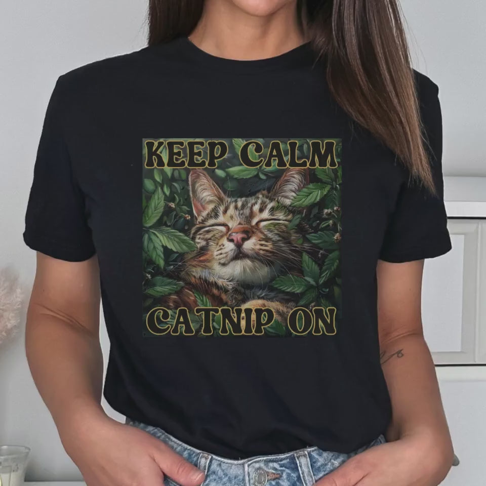 Our lightly distressed design, Keep Calm, Catnip On is the perfect gift for yourself or your anxiety-riddled friends.