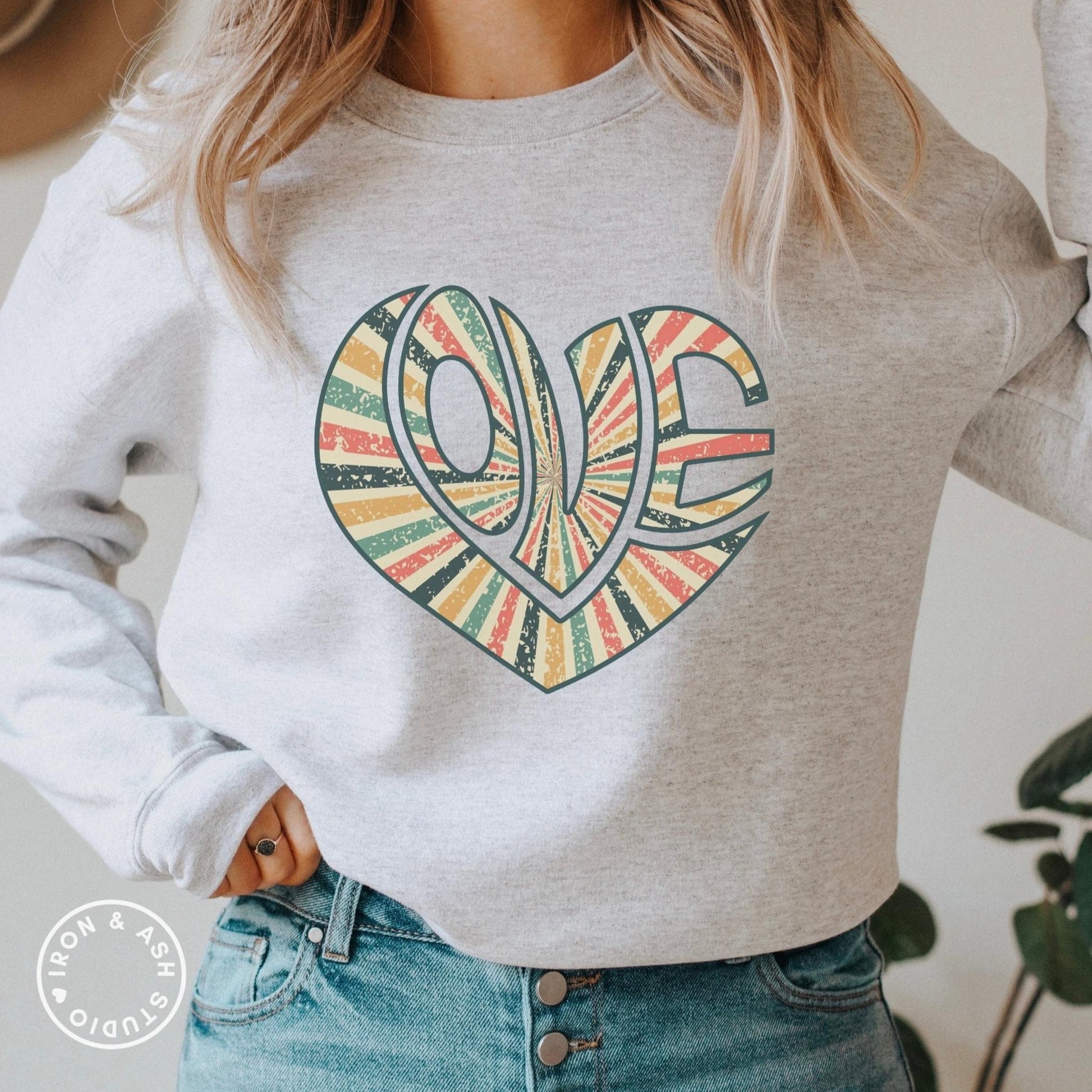 Love Retro Heart Sweatshirt, Love Sweatshirt, Positivity Sweater, Self Love, Teacher Love Crewneck, Spread Kindness, Valentines Day Shirt