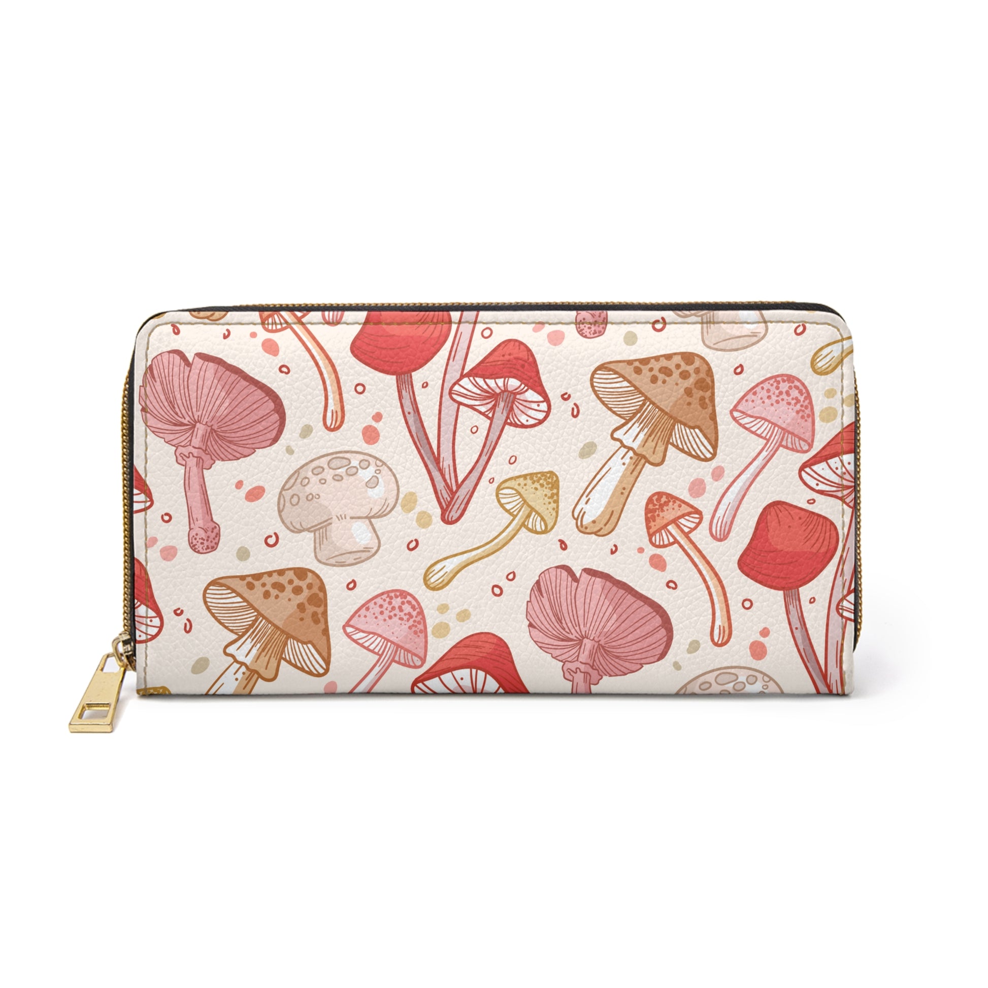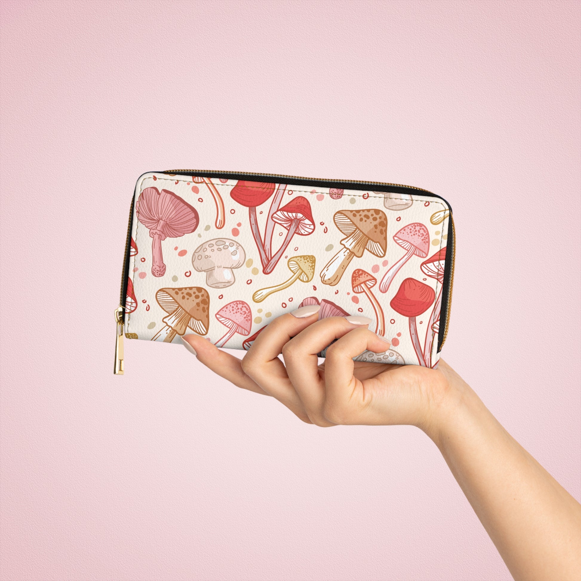 Mushroom Wallet, Cottagecore Gifts For Her, Zip Around Wallets for Women, Vegan Wallet, Faux Leather Patterned Fungi Clutch, Cute Printed