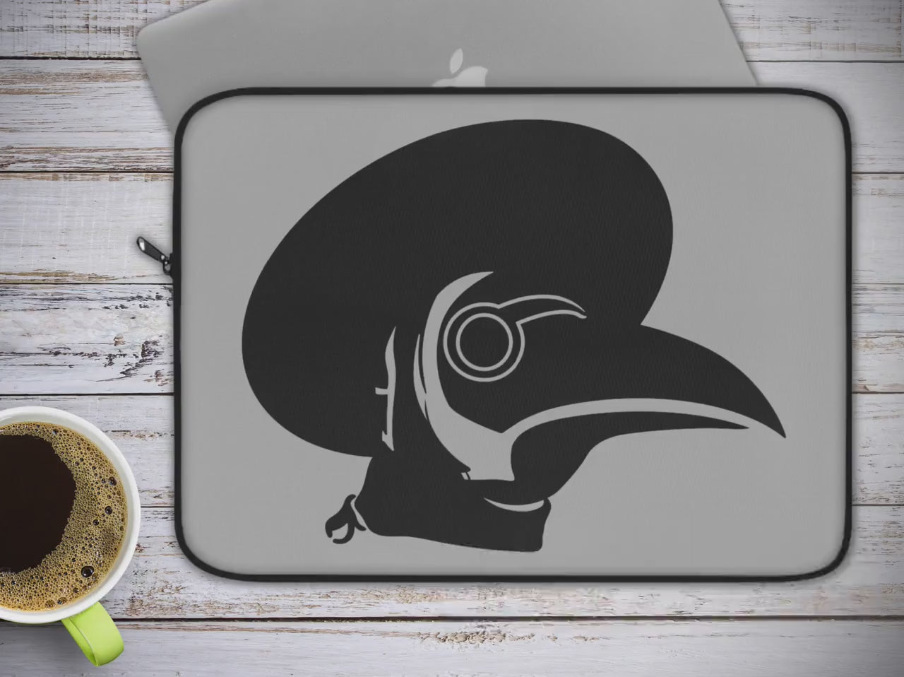 Our Plague Doctor laptop sleeve is the perfect way to carry your laptop with style!