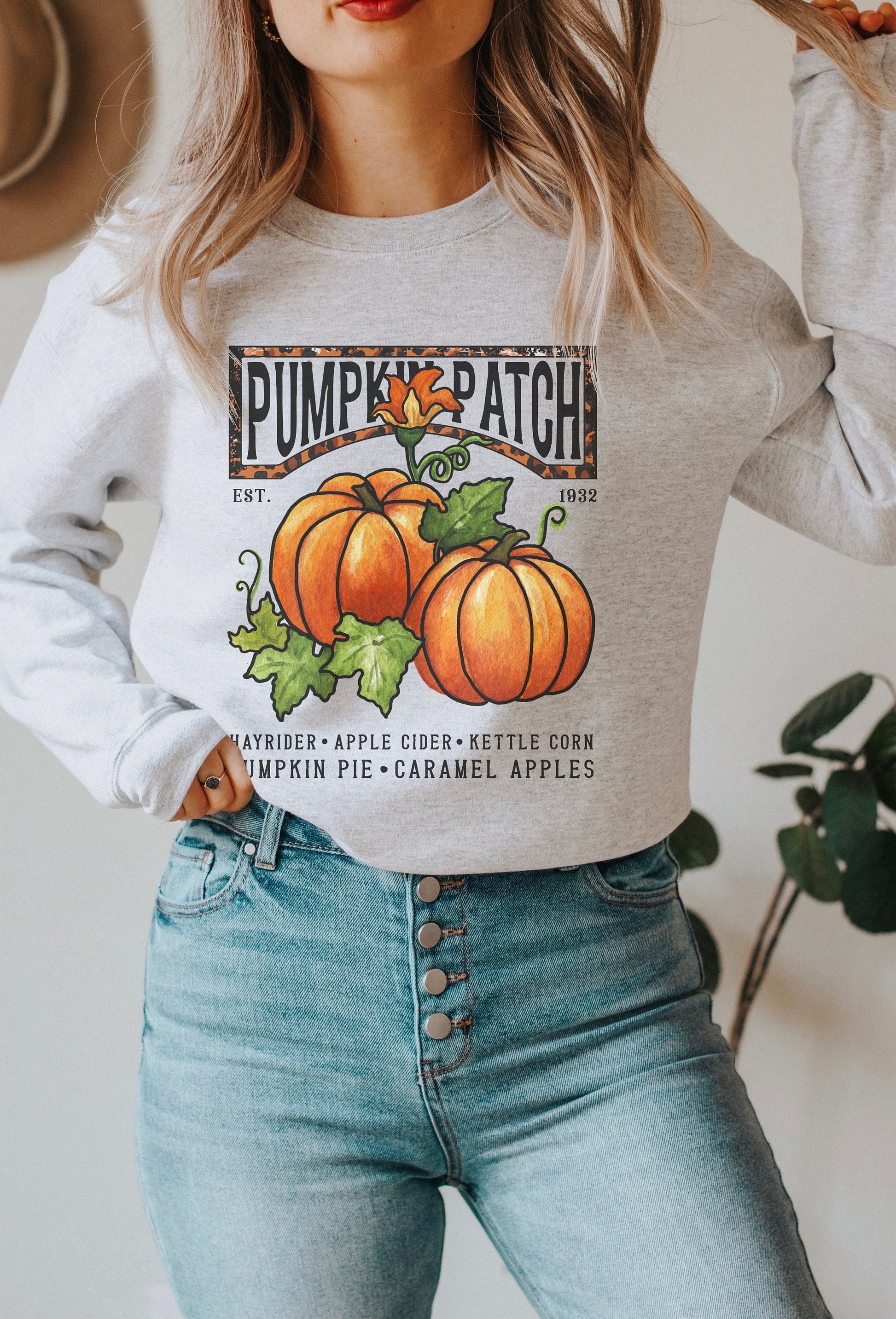 Whether you're picking out the perfect pumpkin or sipping on a hot apple cider, this pumpkin patch shirt is sure to become a fall favorite. It's a fun and playful addition to your wardrobe that captures the essence of the season and adds a touch of whimsy to any outfit. So, get ready to cozy up in style with this adorable pumpkin patch crewneck tee!