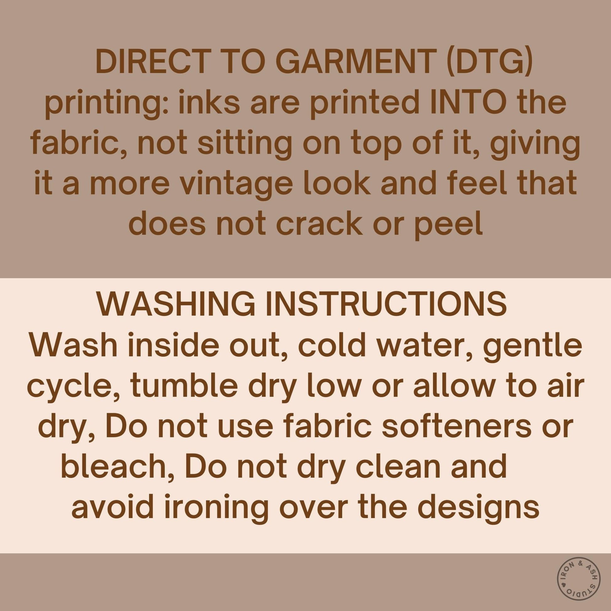♥️ PRINT This is a Direct To Garment (DTG) printed item and will NOT crack or peel like vinyl. The ink is printed INTO the fabric, not sitting on top of it, giving a more vintage look and feel.