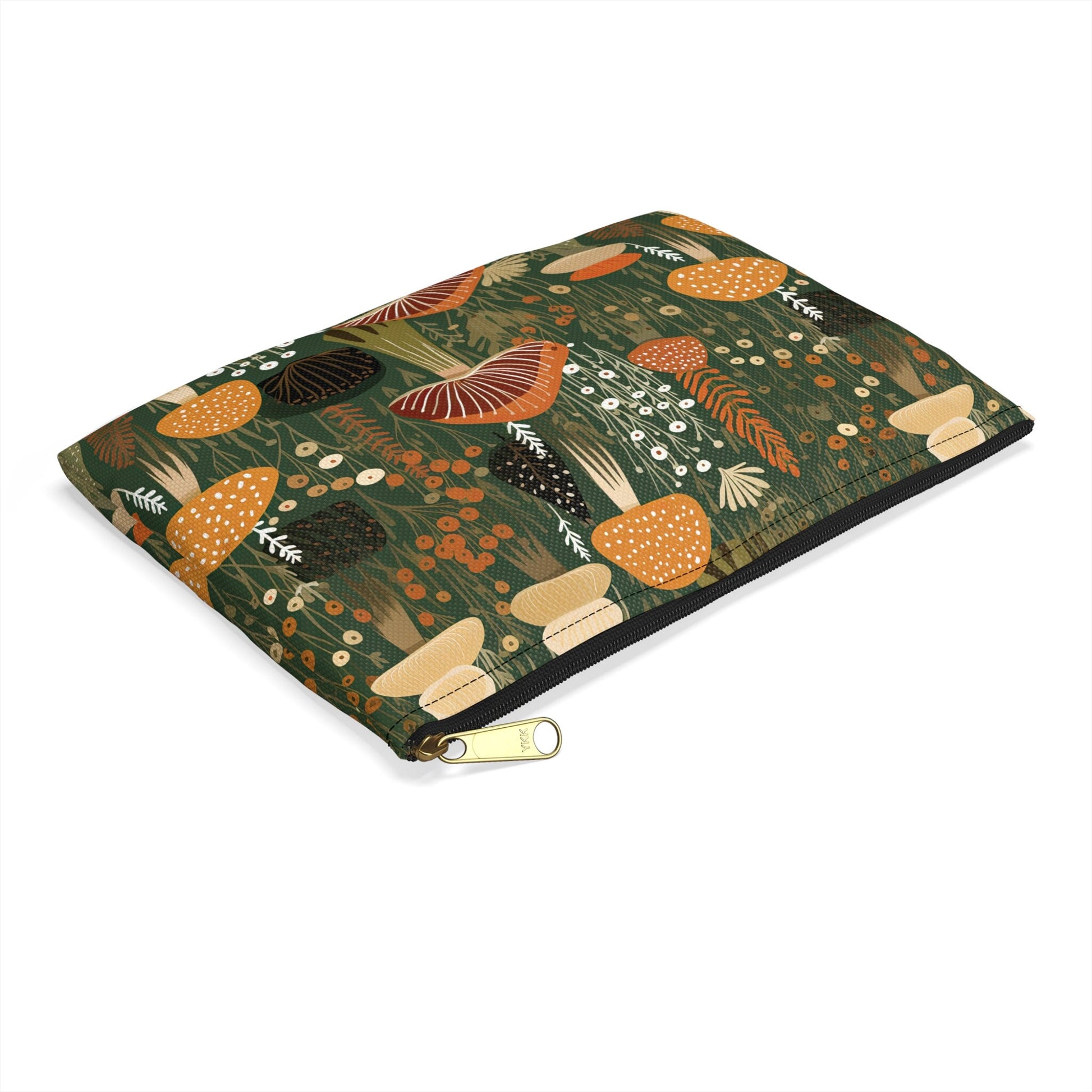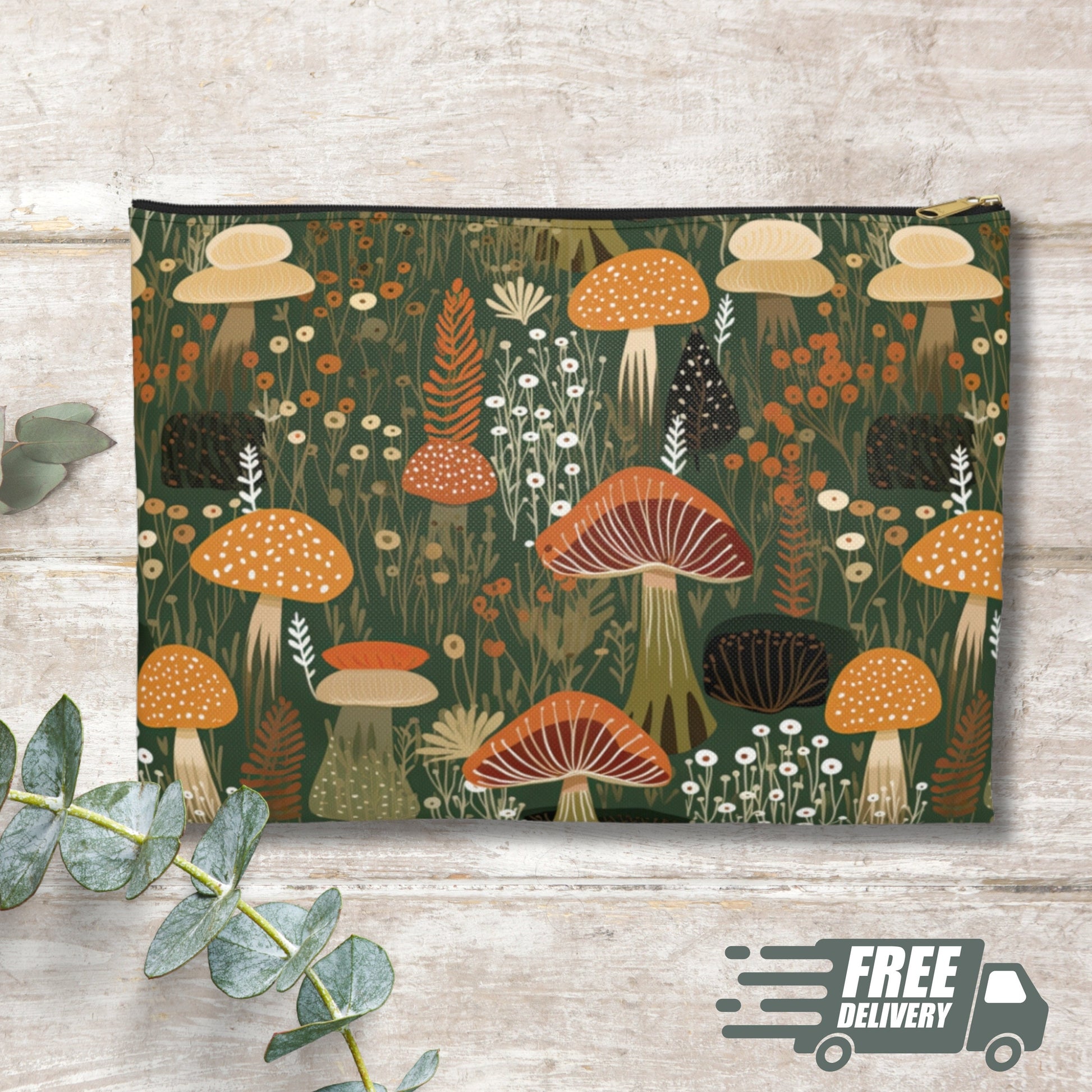 Mushroom Zippered Pouch, Mushroom Accessory Pouch, Mushroom Makeup Bag, Flat Zipper Pouch, Zippered Bag, Zippered Cosmetic Pouch, Zip Bag