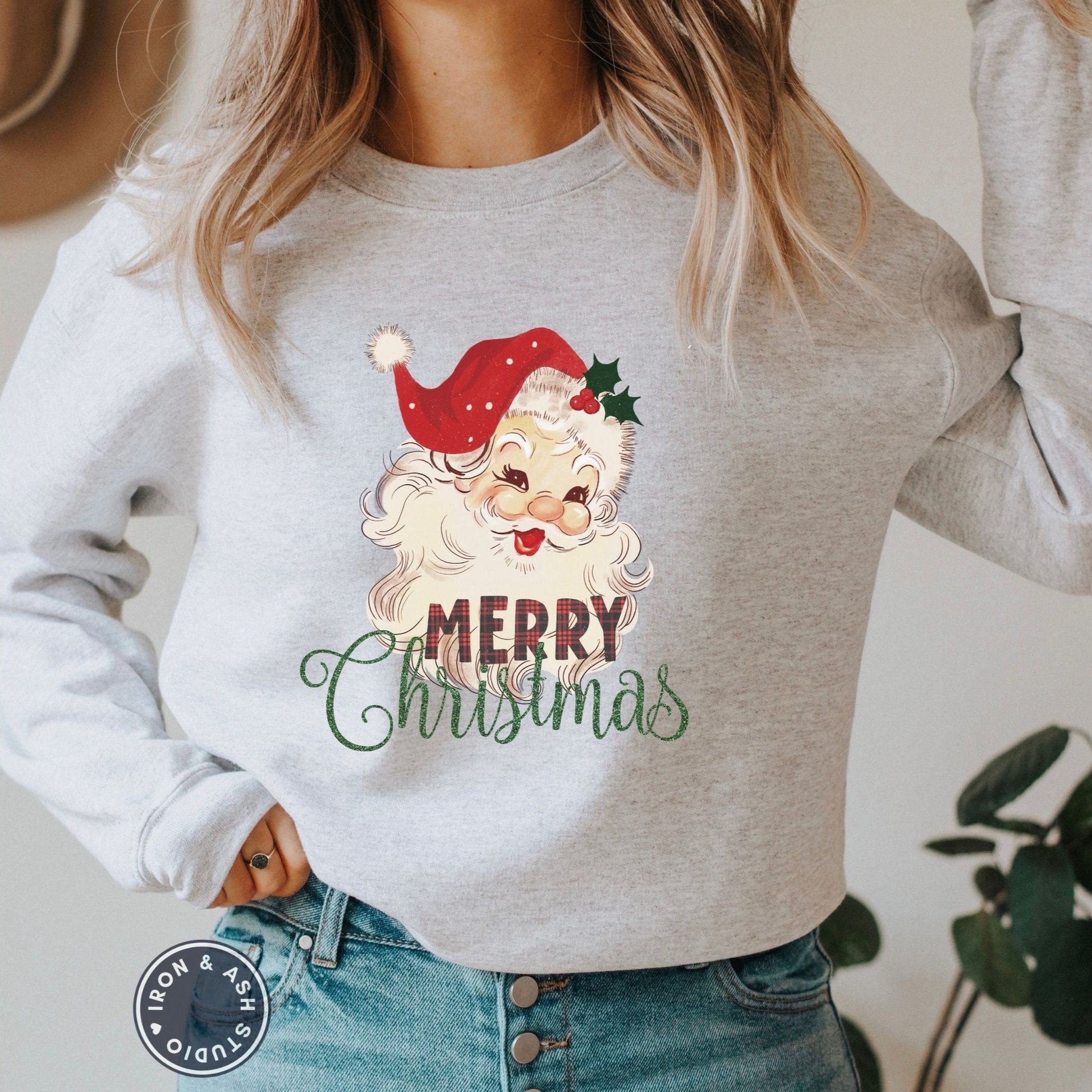 Retro Santa Sweatshirt, Merry Christmas Santa Sweater, Retro Santa Clause, Vintage Christmas Santa Shirt, Christmas Crewneck Women, Vintage