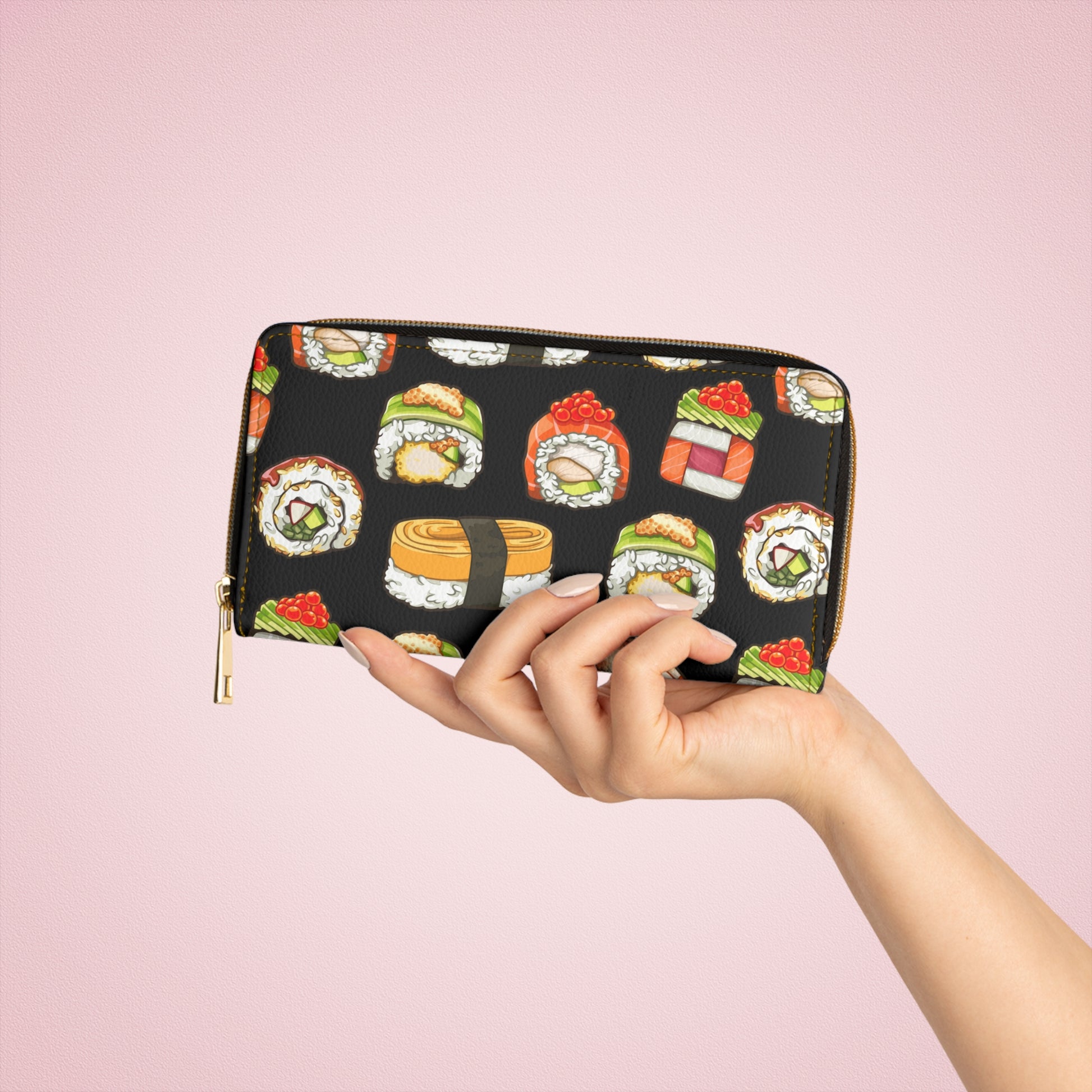 Sushi Wallet, Sushi Lover Gift, Vegan Faux Leather Wallet, Zip Around Clutch for Women, Patterned Sustainable Zip Wallet, Foodie Gift Girls