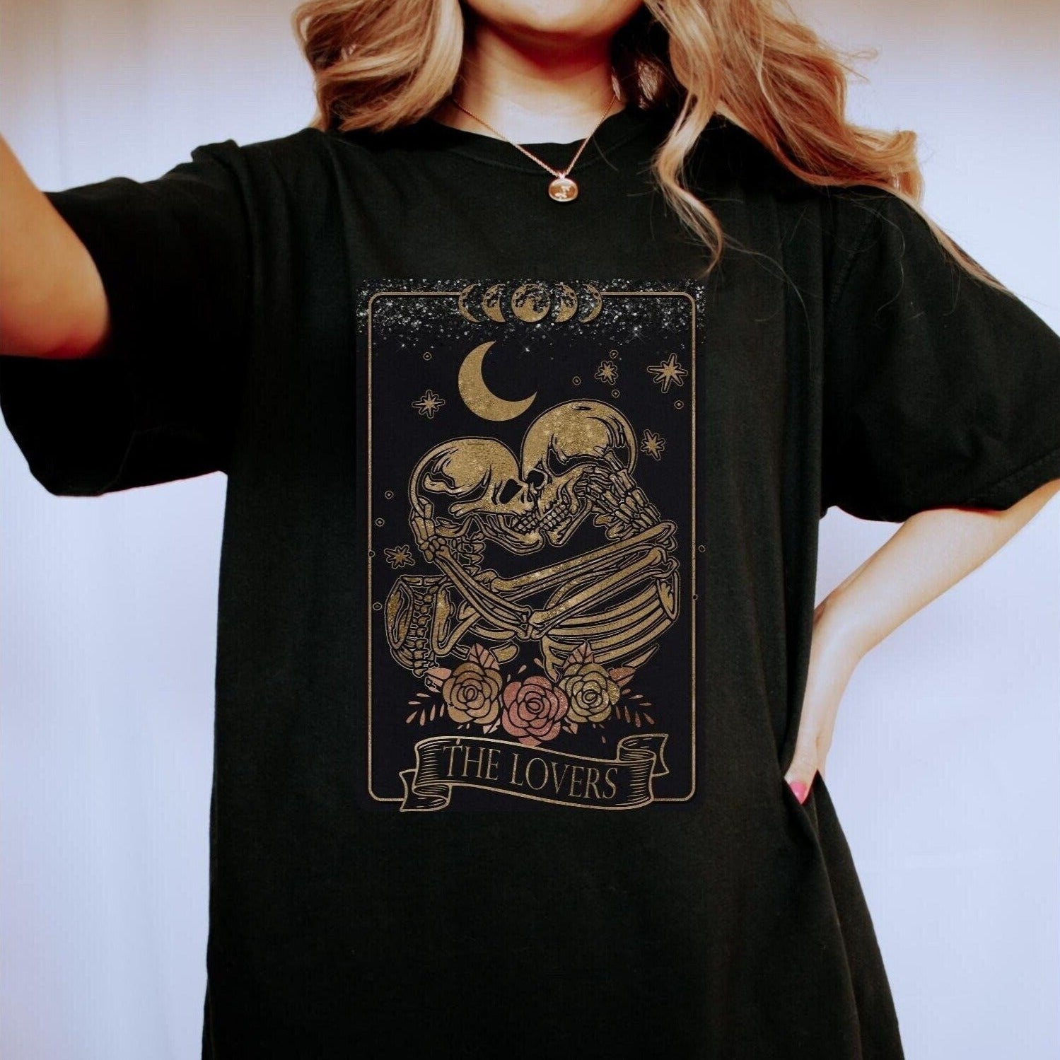 Tarot Lovers The Lovers Shirt, Comfort Colors Halloween Shirt, Skeleton Lovers Tee, Celestial Shirt, Spiritual Shirt, Tarot Halloween Tee
