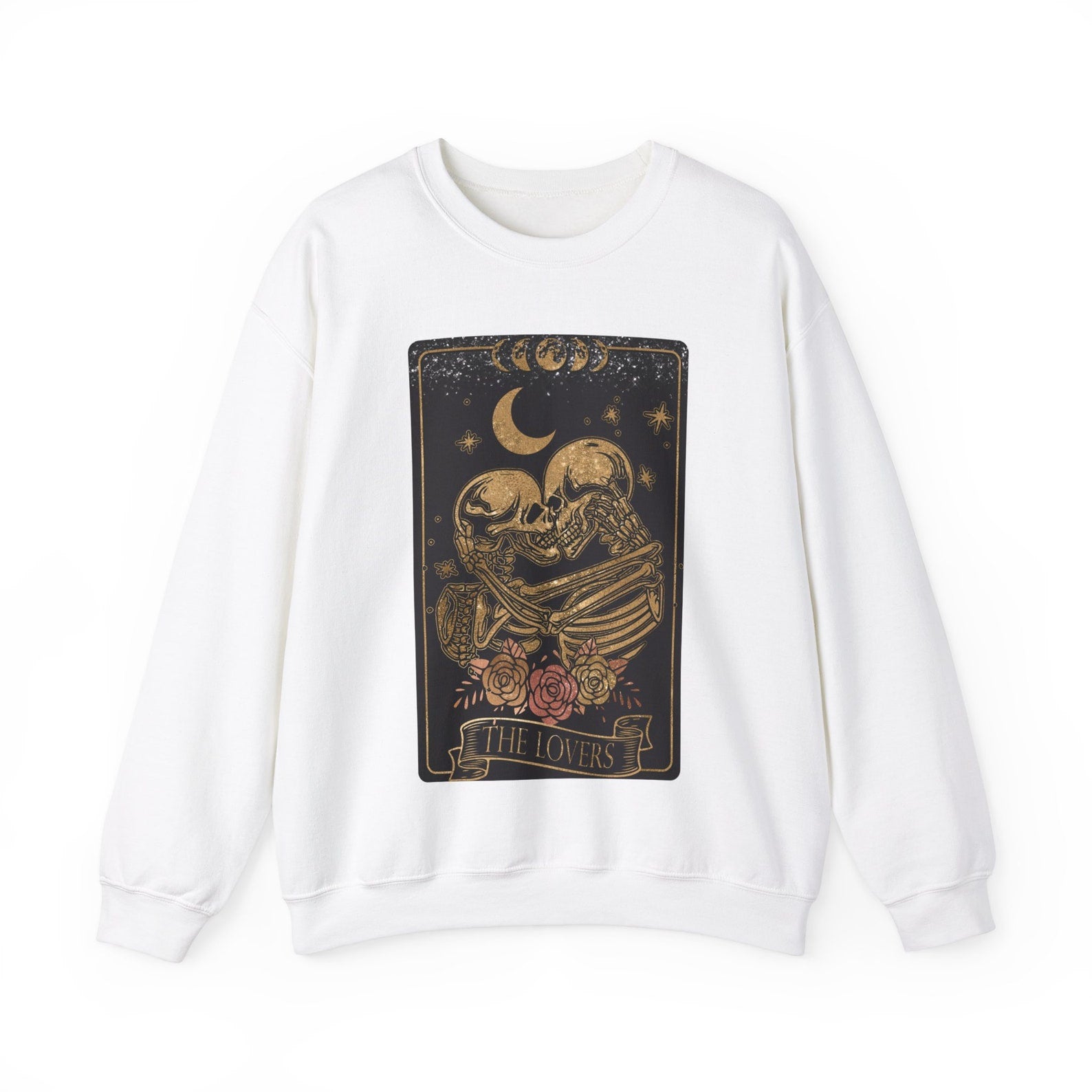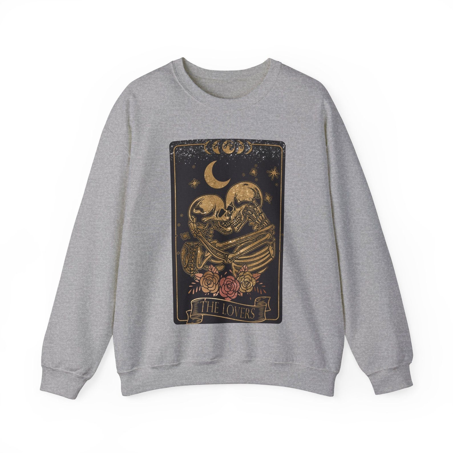 Our beautiful vintage style Tarot Lovers Card, complete with Skeleton lovers and Rose graphics makes for one beautiful sweatshirt. The best-selling Gildan Sweatshirt makes for a beautiful gift for anyone who loves tarot, astrology, and has a love for the spiritual side.
