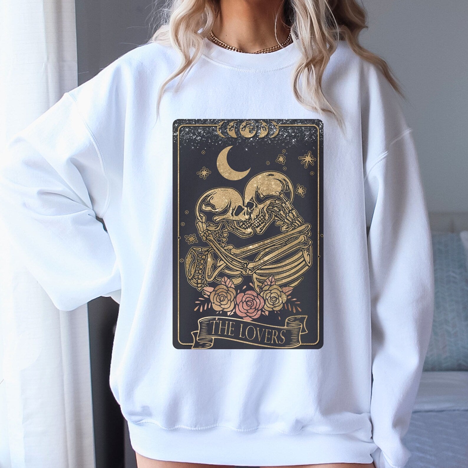 The Lovers Tarot Card Sweatshirt Spiritual Sweatshirt Skelton Tarot Witchy Gifts Dark Academia Emo Mystic Sweater Witchy Astrology Clothing