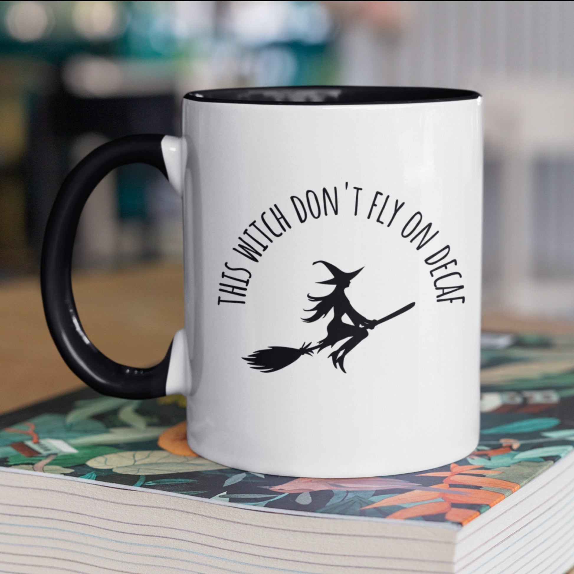 Witch Coffee Mug, Witches Brew Mug, Witchy Woman, This Witch Don't Fly on Decaf, Funny Coffee Mug, Fall Mug, Autumn Coffee Mug, Wiccan Mug