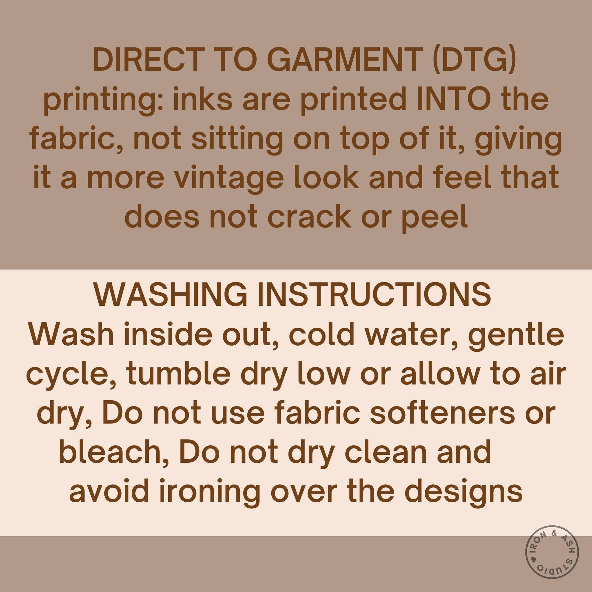 The ink is printed INTO the fabric, not sitting on top of it, giving a more vintage look and feel.