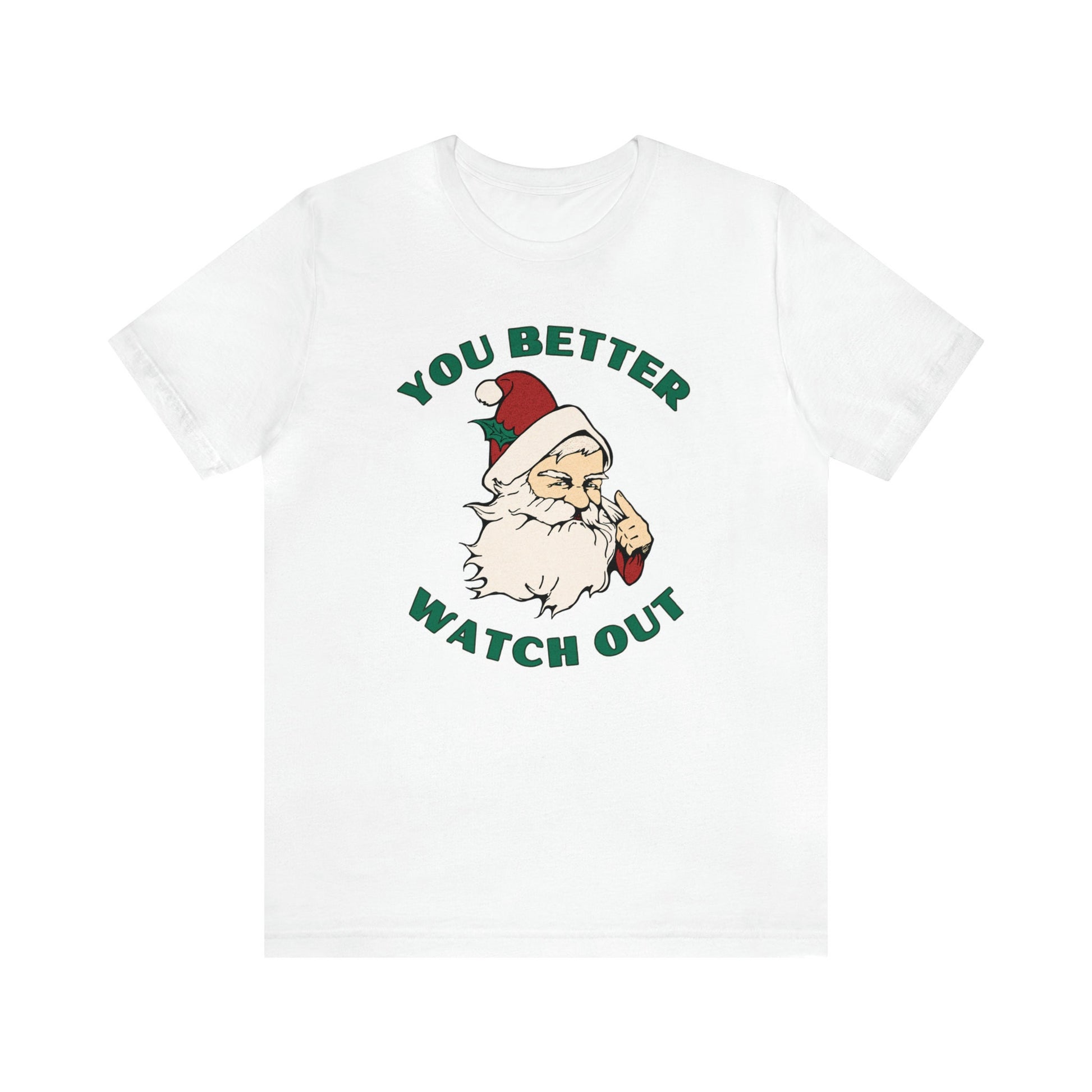 You Better Watch Out Shirt Funny Santa TShirt Ugly Christmas Shirt Party T-Shirt Santa Shirt for Men Santa Crewneck Tee Xmas Party Shirt